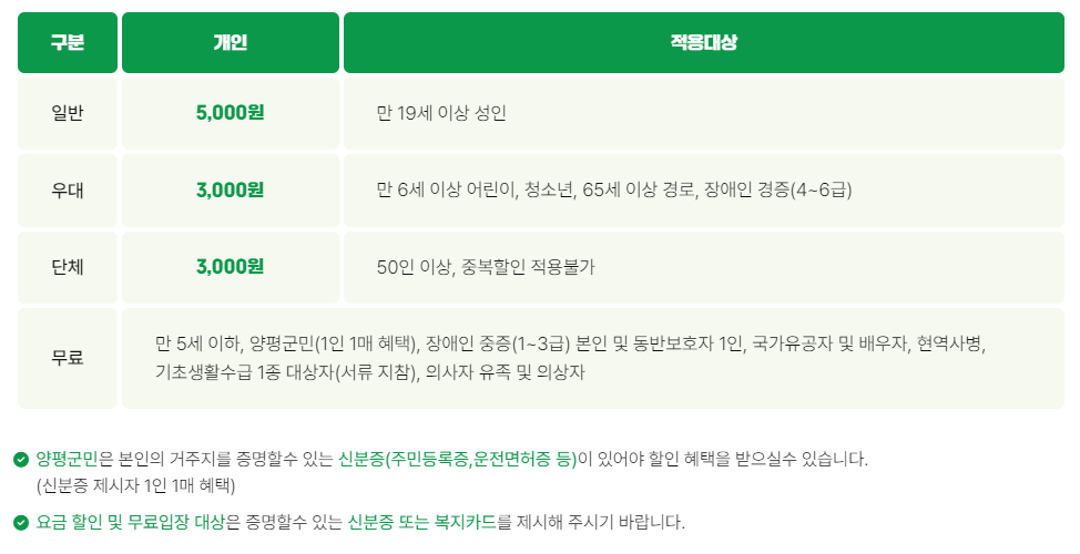 입장권은 일반 5,000원, 만 6세 이상 어린이, 청소년, 65세 이상 경로, 장애인 경증(4~6급) 3,000원입니다.