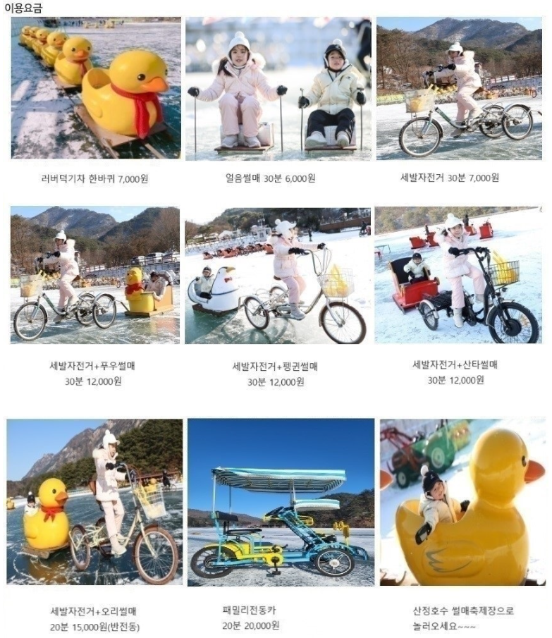 | 세발자전거 + 오리썰매 20분 | 15,000원 (반전동) |