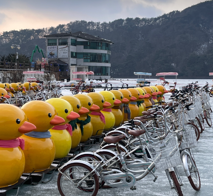 산속의 커다란 우물과 같은 포천 산정호수에서 겨울축제가 개최됩니다. '산정호수 썰매축제'는 꽁꽁 언 산정호수에서 푸우썰매, 산타썰매, 펭귄썰매, 오리썰매 등 다양한 모양의 썰매 타기와 하얀 눈 내려앉은 풍경도 즐길 수 있어 서울근교 경기도 겨울 여행지로 최적지입니다.