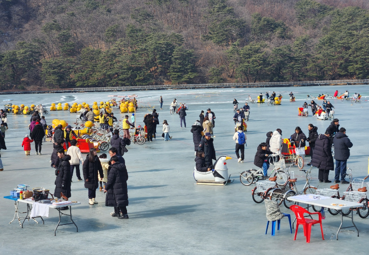 산속의 커다란 우물과 같은 포천 산정호수에서 겨울축제가 개최됩니다. '산정호수 썰매축제'는 꽁꽁 언 산정호수에서 푸우썰매, 산타썰매, 펭귄썰매, 오리썰매 등 다양한 모양의 썰매 타기와 하얀 눈 내려앉은 풍경도 즐길 수 있어 서울근교 경기도 겨울 여행지로 최적지입니다.