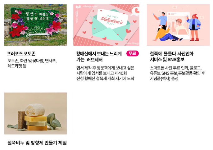 ● 행사내용 : 철쭉 풍년 제례, 체험 및 참여행사, 농. 특산물 판매장 및 향토음식점 운영 등