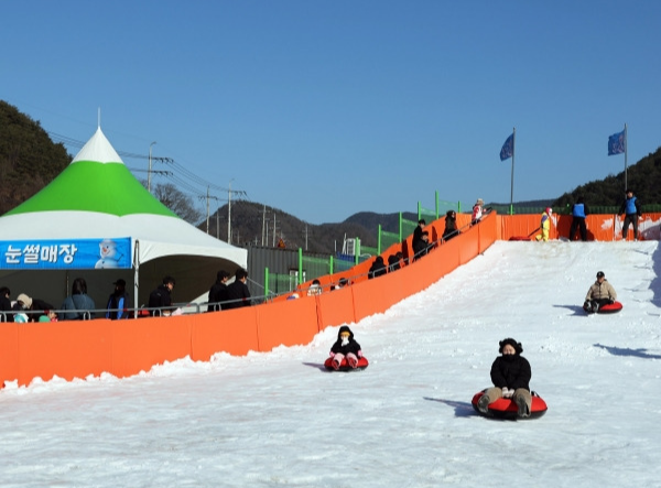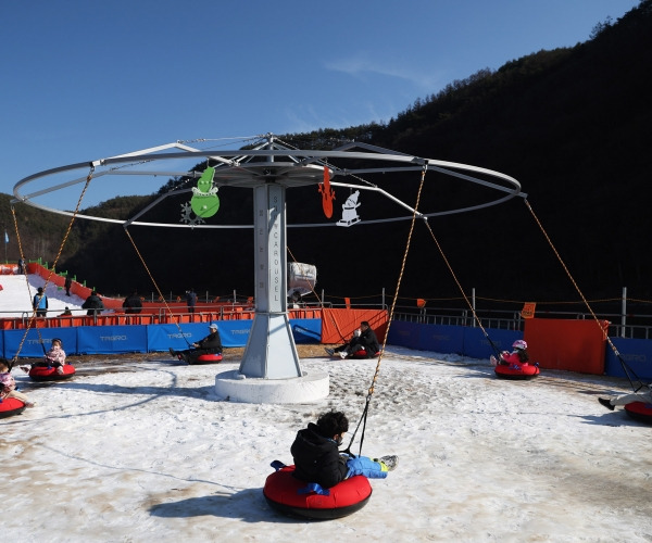 겨울 액티비티에서 빠지면 섭섭한 눈썰매장! 인공으로 조성된 눈썰매장에서 스릴을 느껴보세요.