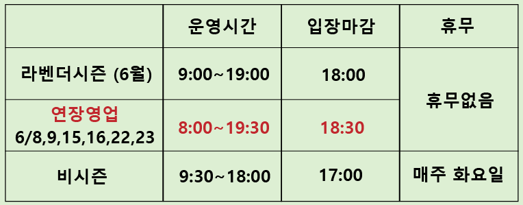 하늬라벤더팜 라벤더축제 입장료 및 운영시간