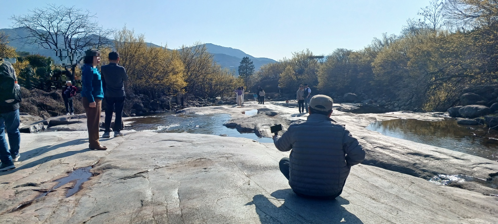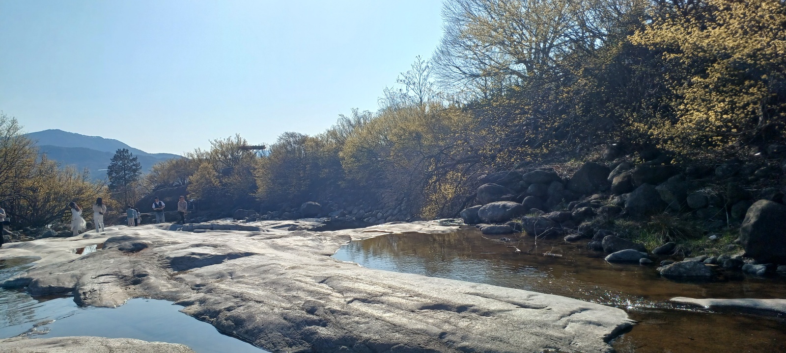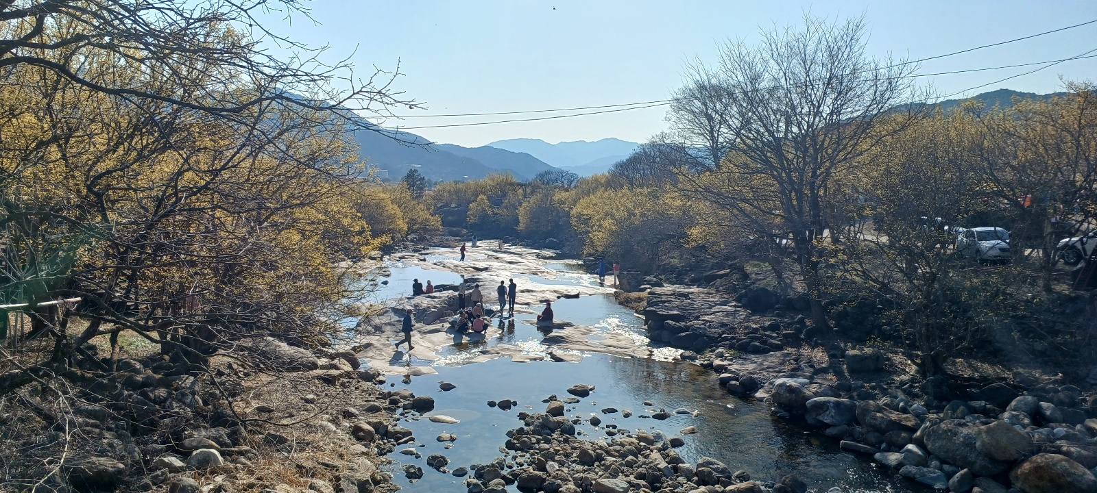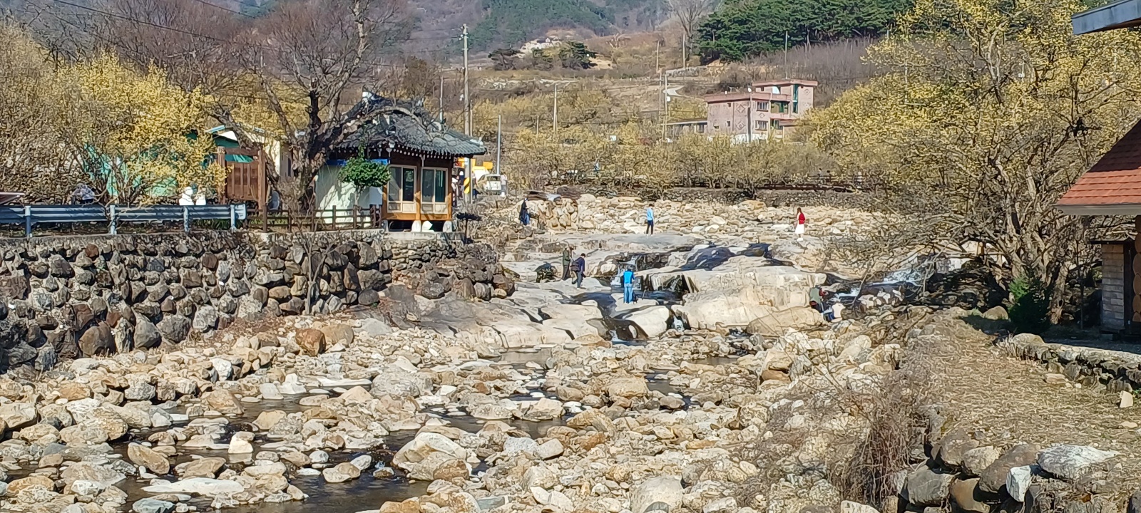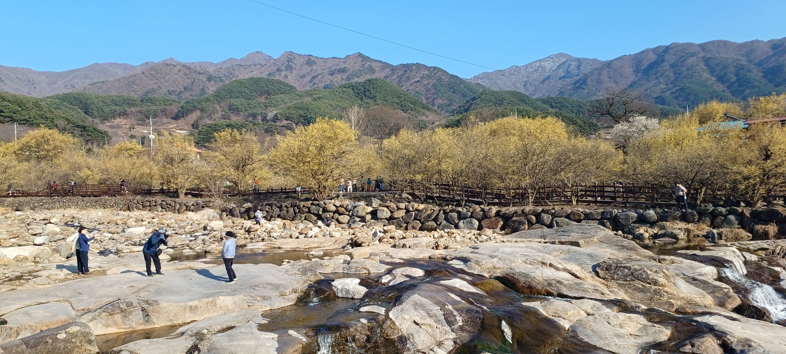 이곳 반곡마을은 넙적 바위가 많아 그 위에서 예쁜 사진을 담기 위해 많은 사람들이 산수유마을에서 빠지지 않고 방문하는 곳입니다.