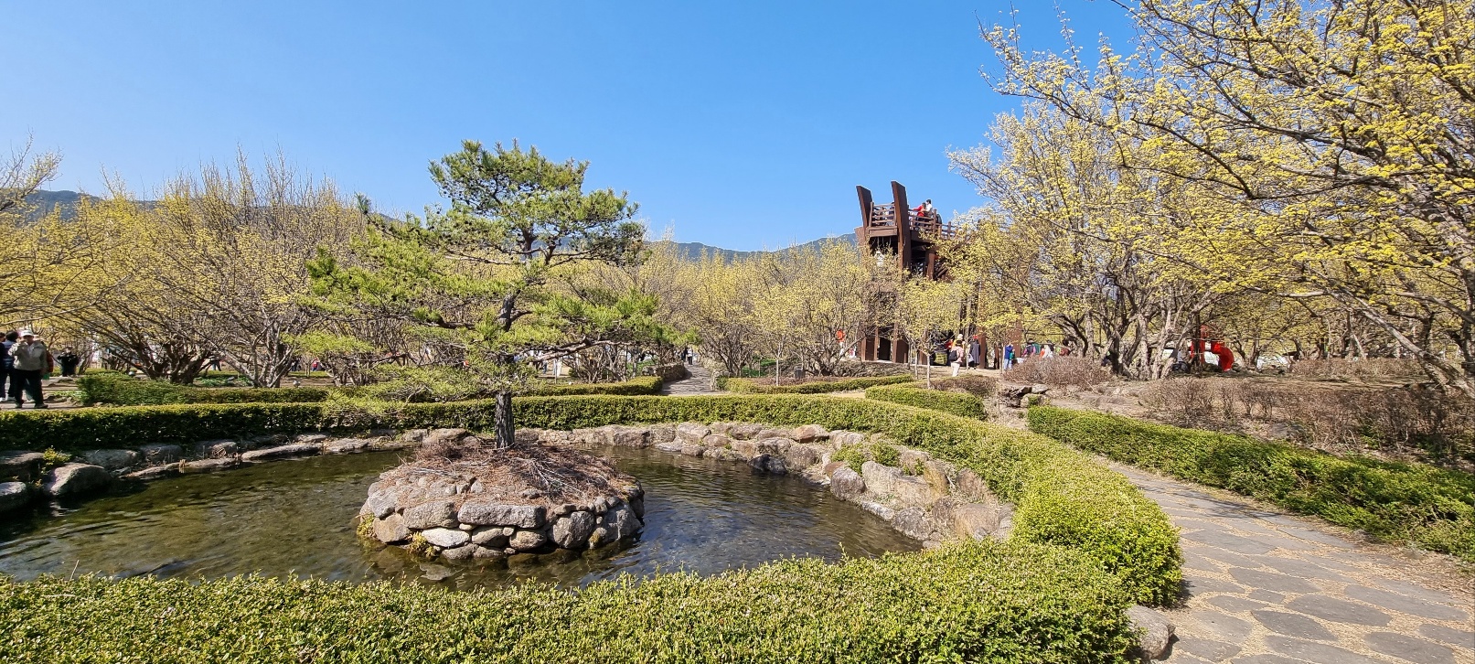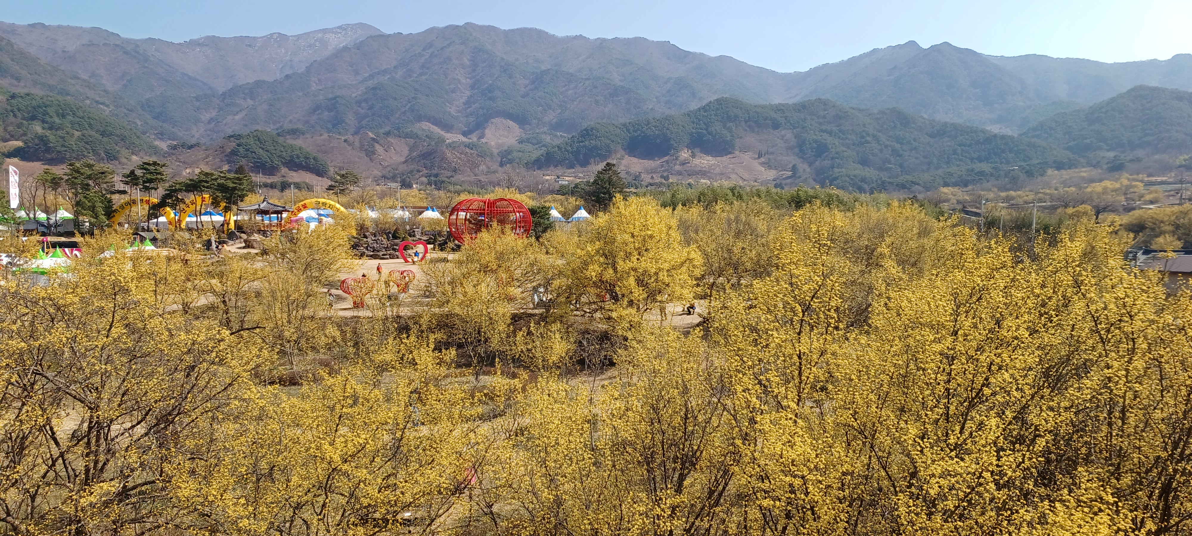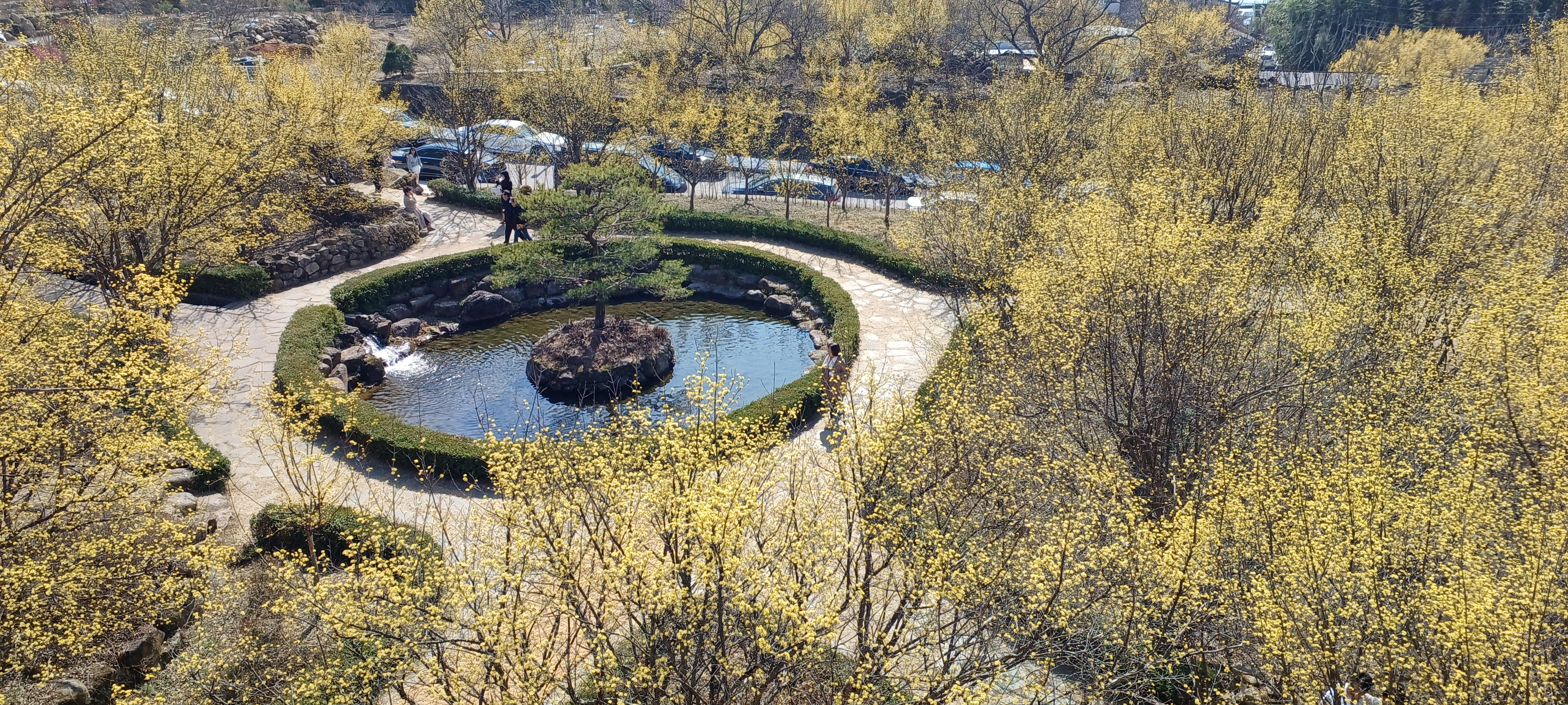 전망대 위에 올라가면 수석공원 가득 피어난 산수유를 360도로 감상할 수 있습니다.