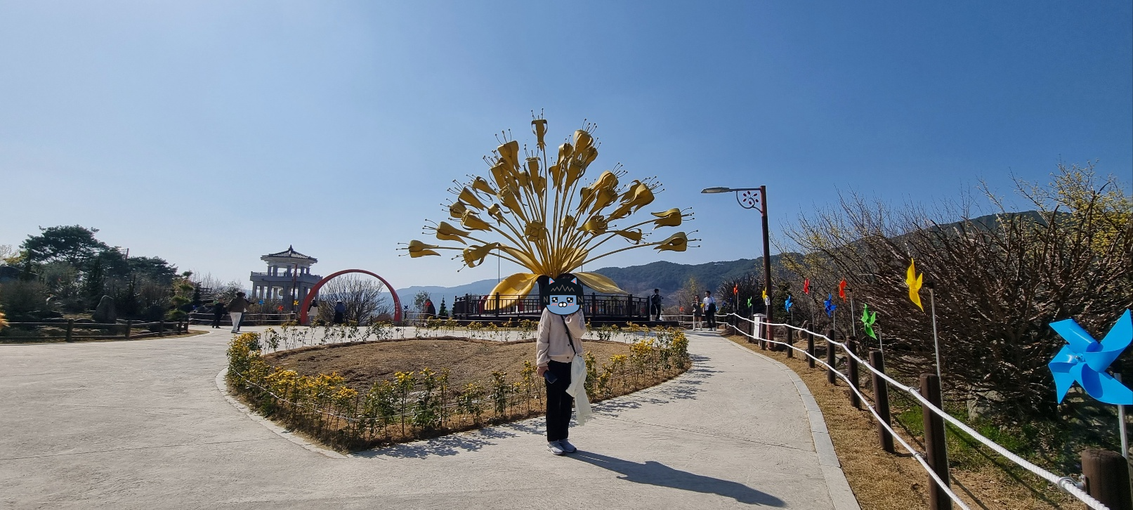 사랑공원의 메인 포토존 하트모양의 화단과 노란 산수유 조형물을 함께 찍어봅니다. 작년 방문에서는 하트 모양의 화단이 풍성했던 것 같은데 조금 아쉽네요.