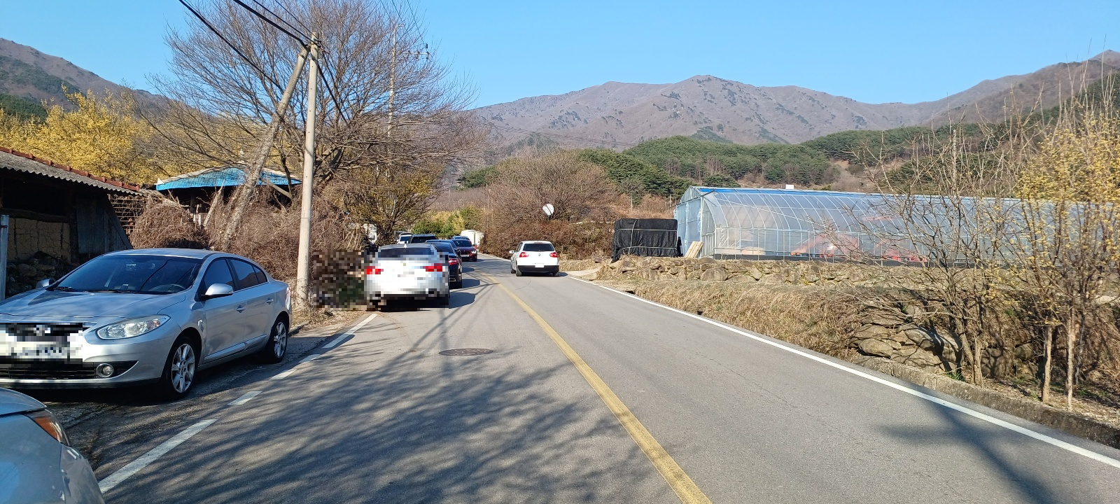 반곡마을에 주차장 있지만 규모가 작아서 길가에 주차하는 차량 많아요.