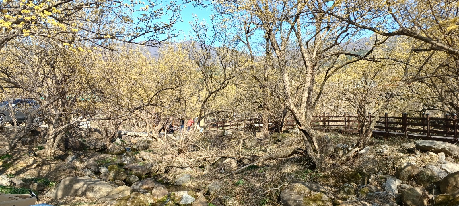 산수유 수석공원은 산수유 가득한 풍경을 감상하기에 제일 좋은 곳입니다. 공원 가득 산수유나무가 싶어져 있어 바람이 살짝 풀어오면 노란 물결 출렁이는 파도를 보는 것 같은 산수유를 감상할 수 있습니다.
