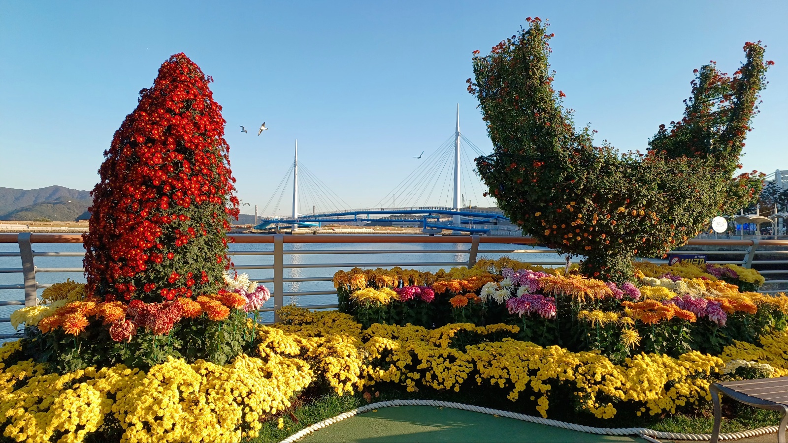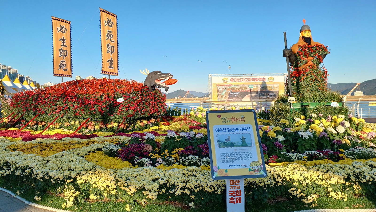 이게 창원시는 축제가 종료된 후에도 많은 사람들이 활짝 핀 국화꽃을 감상할 수 있도록 11월 10일(일)까지 설치한 조형물과 전시꽃을 철거하지 않고 개방하기로 했습니다.