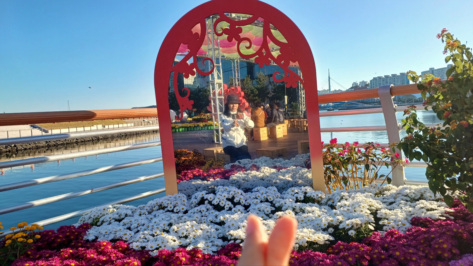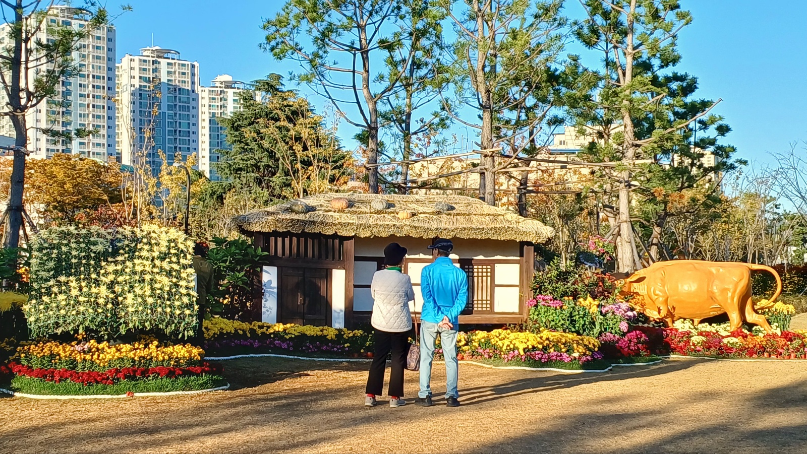방문한 날인 11월 6일 기준 바람이 제법 쌀쌀한 가운데도 많은 사람들이 국화꽃과 조형물을 배경으로 추억을 담고 있었습니다. 사진 찍기에는 축제기간 보담 지금이 훨씬 좋은 것 같습니다. 꽃도 더 많이 피었고 무엇보다 사람들이 적어 인기 포토존에서도 여유롭게 사직 찍기 가능합니다.