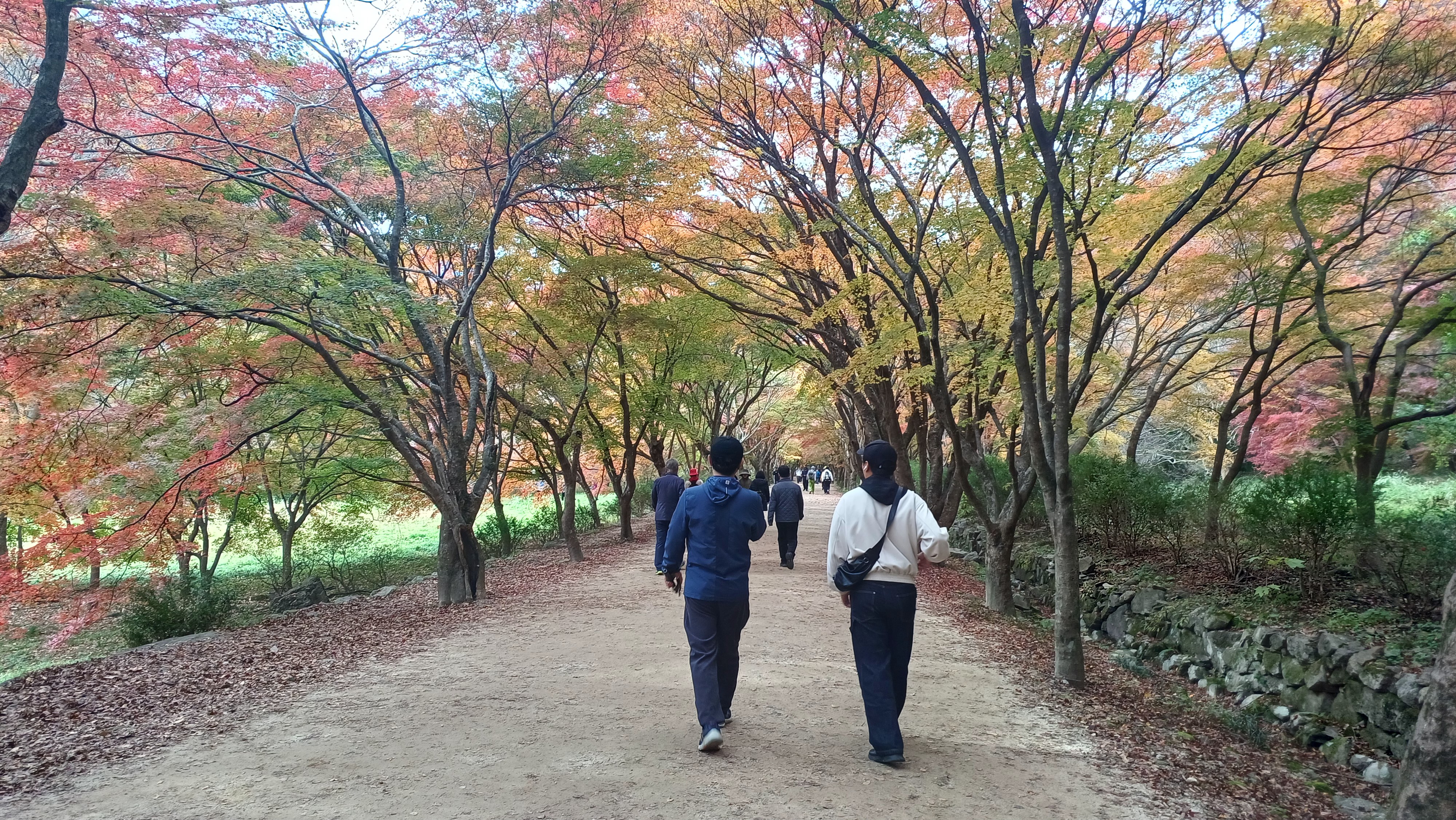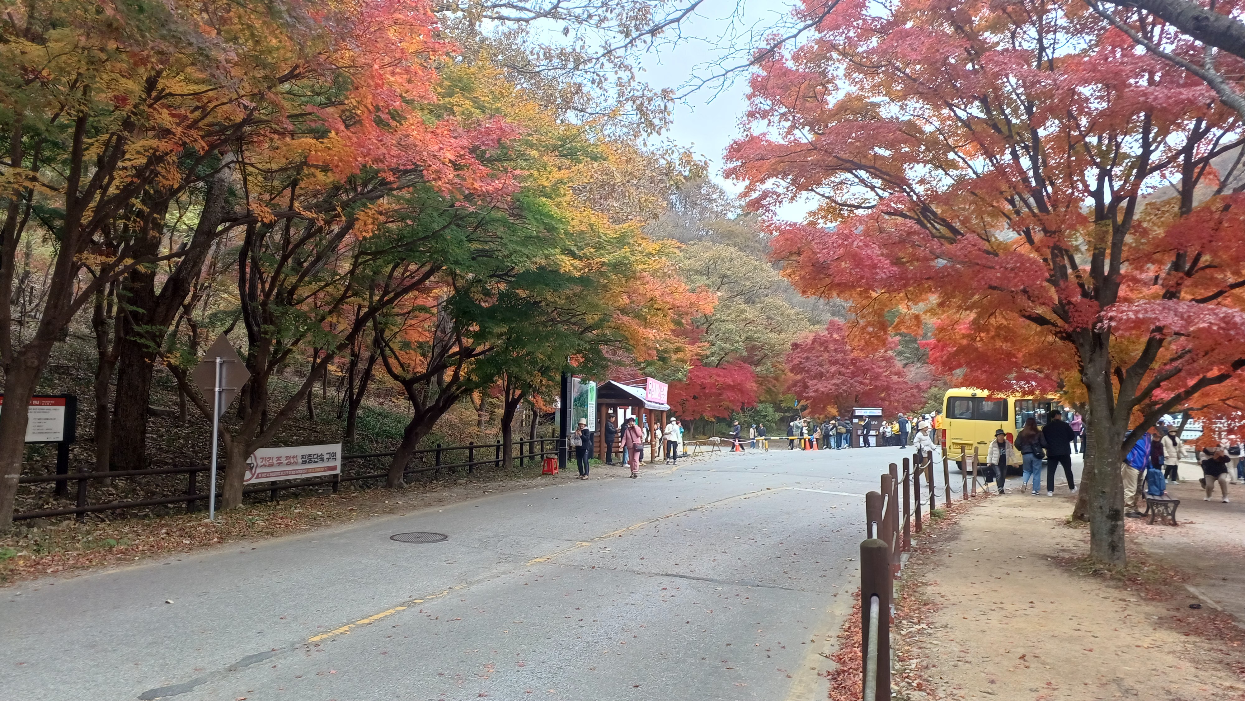 저는 2년 전 방문때는 2주차장을 이용했는데, 경내 셔틀버스 타는 곳까지 단풍 구경하며 천천히 걸으니 약 20분 정도 소요되었던 기억이 나네요.