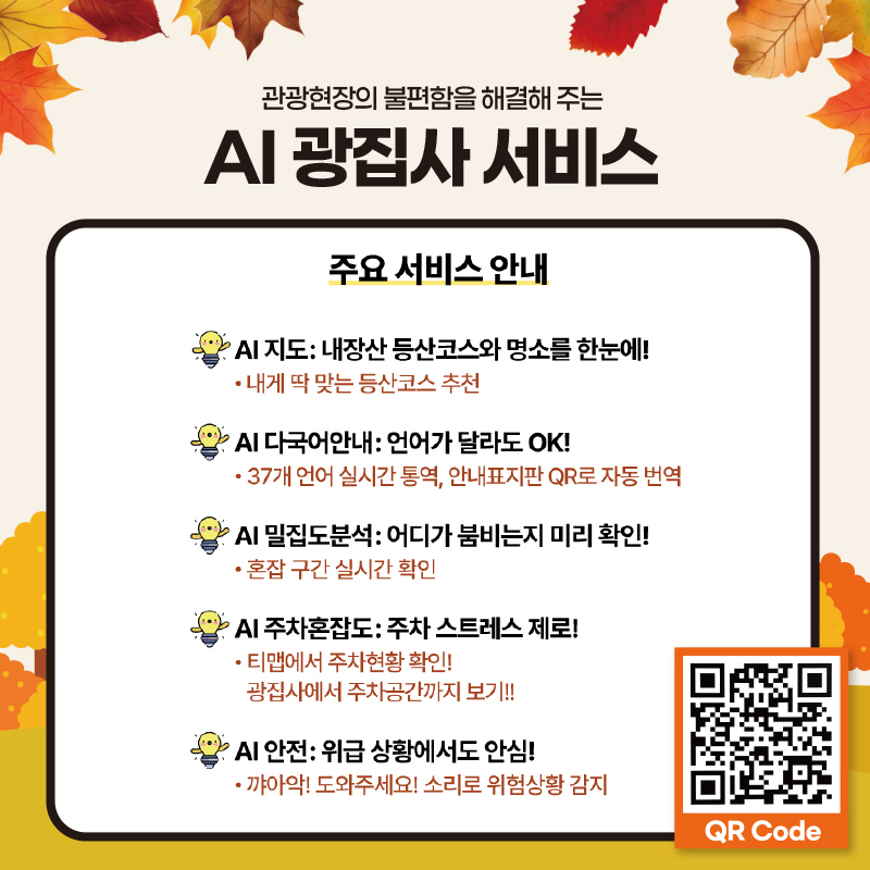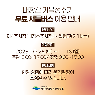 | 차량 통제 | 단풍 성수기 기간 동안 공원 내 차량 진입 통제 |