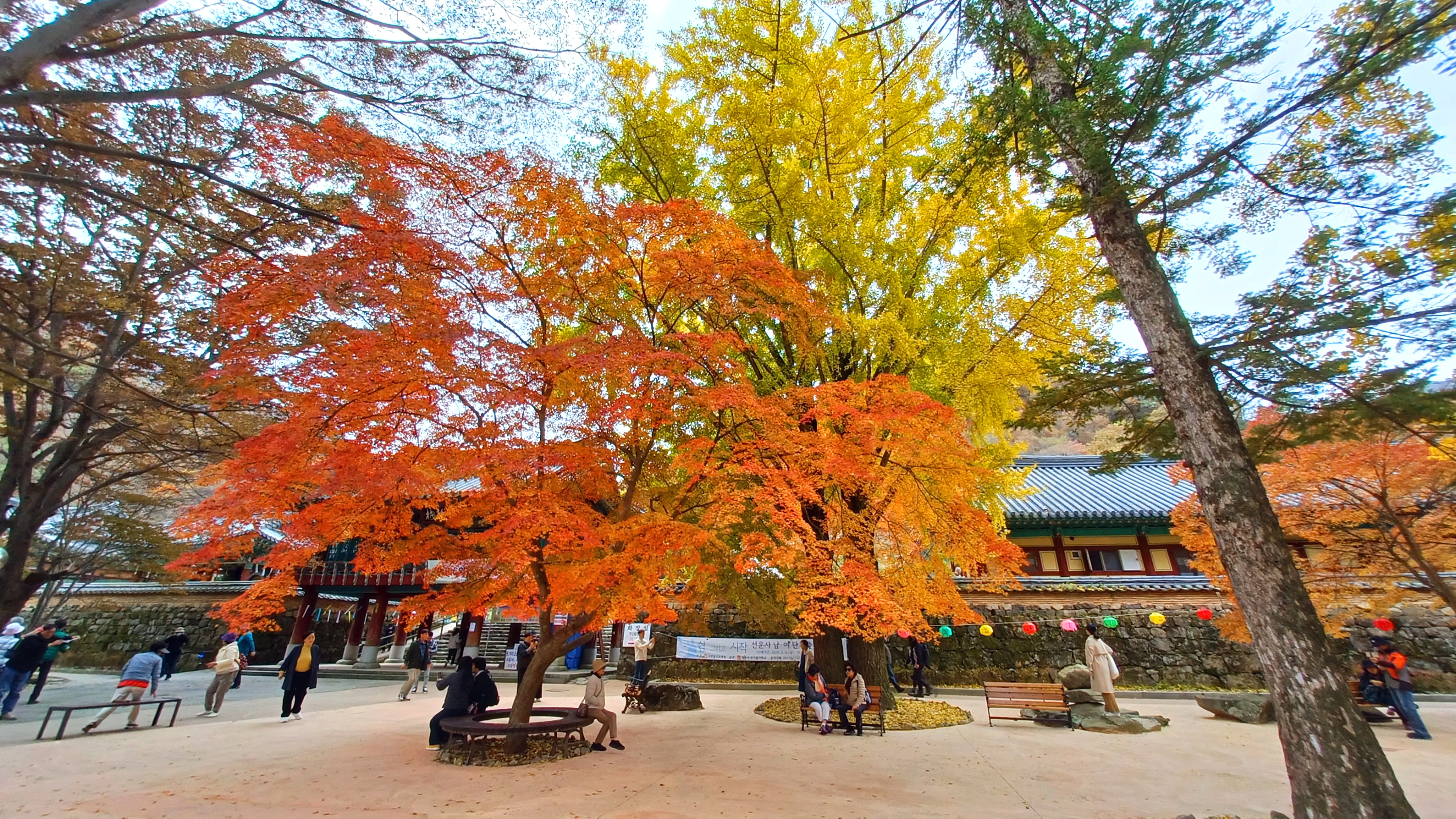 특히 내장사에서 만나는 단풍은 완벽한 사진 맛집이에요! 어디를 향해 찍어도 가을의 정취가 물씬 풍기는 멋진 사진을 담을 수 있었습니다. 사찰 안에서도 담장 너머 붉고 노랗게 물든 단풍이 더할나위없는 가을풍경을 선사하며 인기 사진명소가 되고 있습니다.