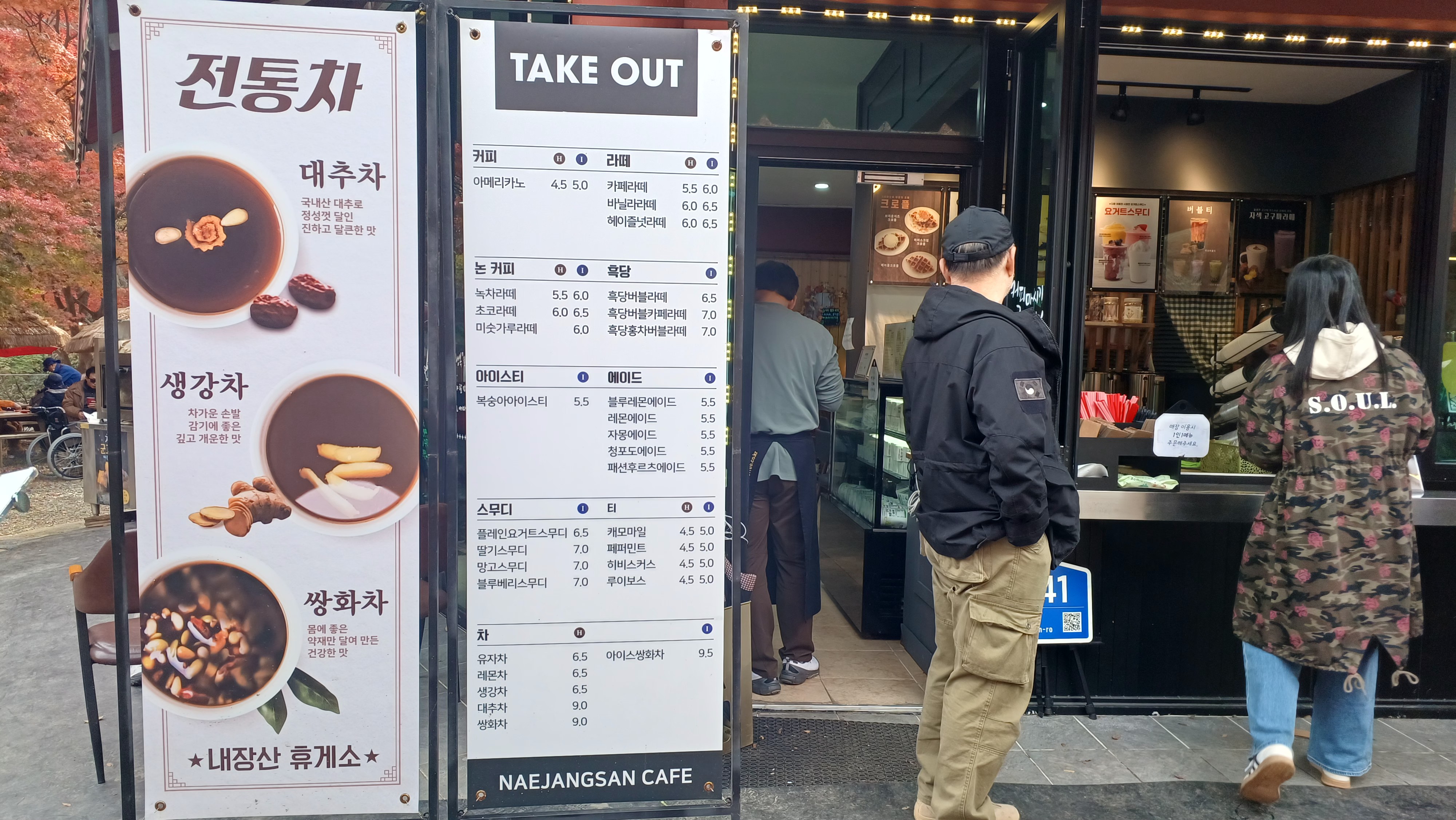 아직 초록색 나무들도 있었지만, 가을이 무르익다 못해 넘쳐흐르는 느낌이었습니다. 이런 곳에서는 왠지 커피보다는 대추차, 생강차, 쌍화차 같은 전통차가 어울릴 듯 합니다.