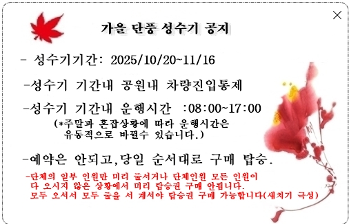 | 예약 여부 | 단풍시즌에는 예약 불가 (현장 발권만 가능) |