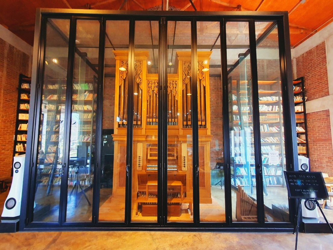 담빛예술창고는 A, B동으로 나눠져 있으며 A동은 복합 전시 공간으로 B동은 카페와 문화예술 교육공간으로 운영되고 있습니다. 특히 B동 카페에는 국내 최초 유일한 대나무 파이프 오르간이 설치되어 정기연주회를 개최하는 등 큰 사랑을 받고 있습니다.
