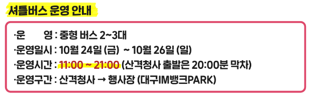 - 운영기간 : 10월 24일(금) ~ 10월 26일(일)