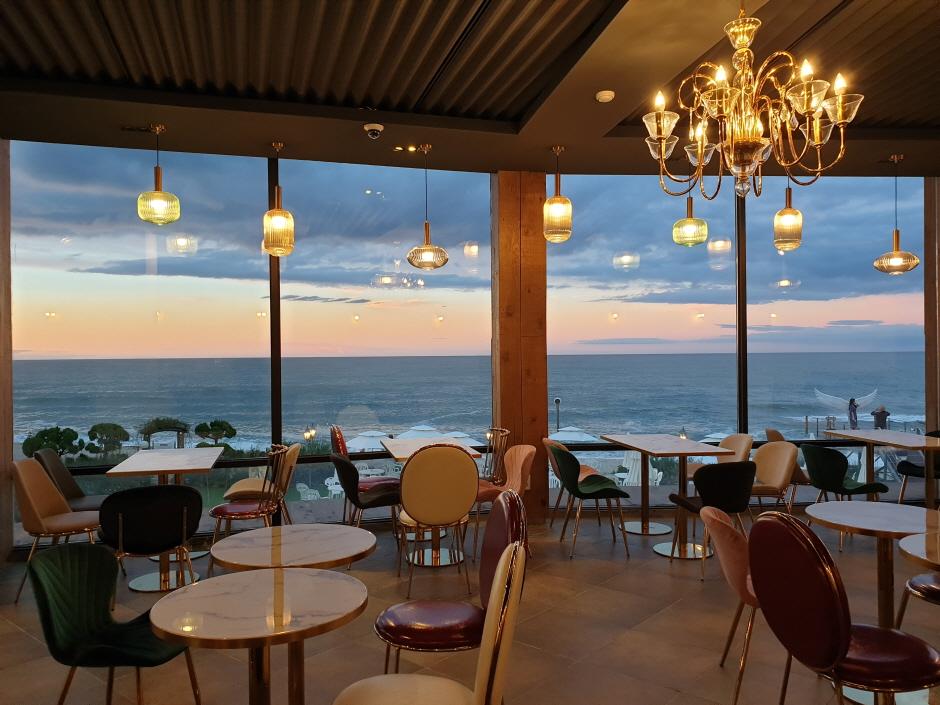 온더버튼은 커다란 통창으로 문암해변이 한눈에 내려다볼 수 있습니다. 분위기 있는 인테리어와 공간 구성으로 카페 곳곳은 인생샷 찍는 포토존으로 유명하며 2층의 루프탑은 바다를 조망하기 좋습니다.