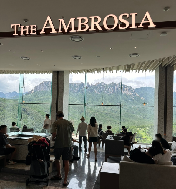 더 엠브로시아는 고성과 인제를 잇는 미시령 고개 부근 소노펠리체 델피노 EAST 10층에 위치해 있습니다. 통유리창 너머로 계절마다 다른 설악산의 풍경을 마주할 수 있으며, 이곳에서 바라보는 울산바위는 병풍처럼 웅장하고 한 폭의 그림 같습니다.