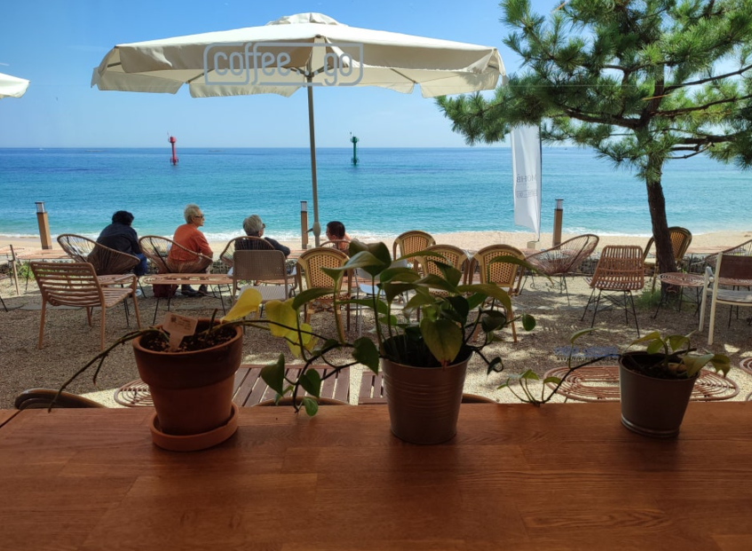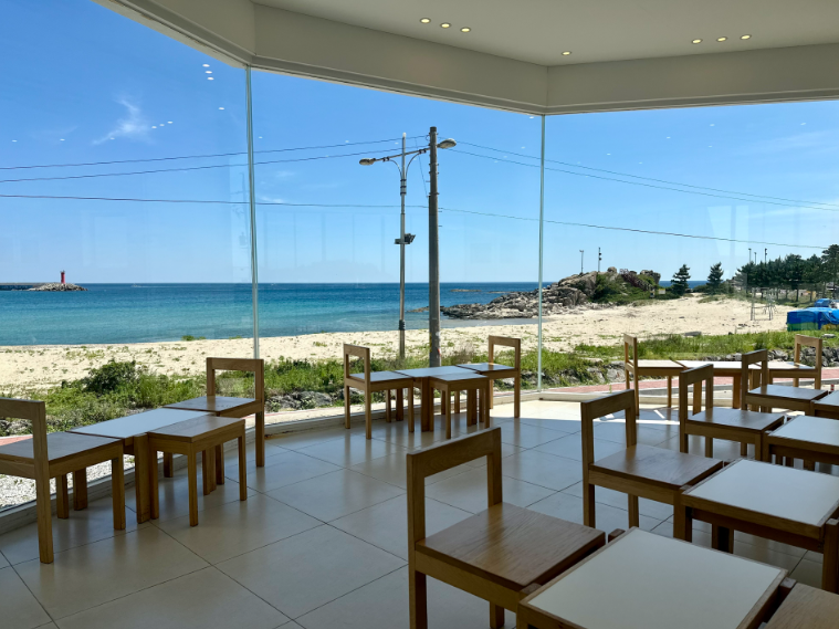 봉포해변에 위치한 오션뷰 카페 커피고는 갓 볶은 신선한 커피 향이 인상적인 곳으로 통창으로 바다를 향한 좌석이 늘어선 실내와 사각사각 모래 위의 실외 테이블로 구성되어 있습니다.