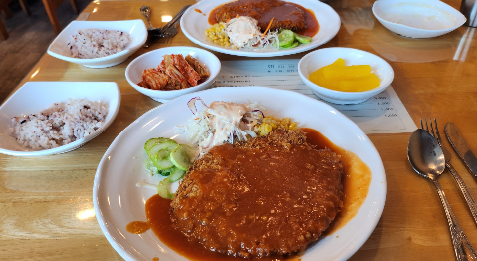 장미경양식은 일반 돈가스와 치즈 돈가스 두 가지 메뉴만 판매하고 있는 돈가스 전문점입니다. 옛 날 경양식답게 수프가 에피타이저로 나오고 커다란 왕돈까스에 소스를 듬뿍 뿌려주는 옛날 방식의 경양식 돈가스를 맛볼 수 있습니다.