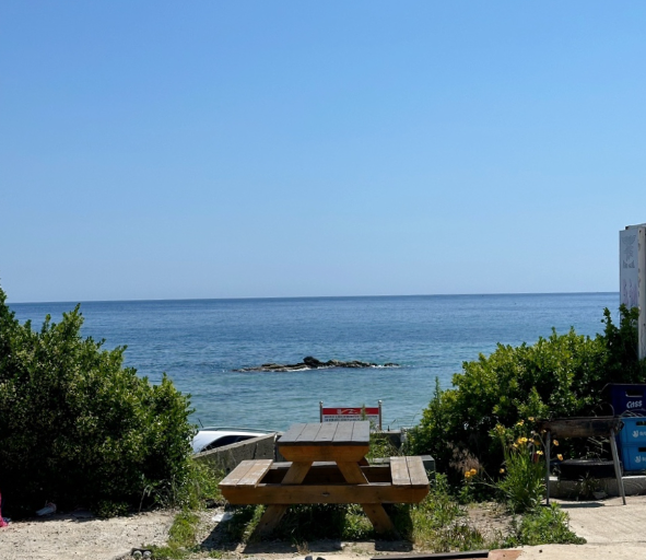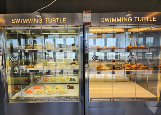 아야진 해변에 있는 오션뷰 루프탑 카페 스위밍터틀은 단식 좌석 배치로 모든 좌석에서 바다를 볼 수 있습니다. 큰 통창으로 바라보는 푸른 바다가 인상적인 스위밍터틀은 사진도 잘 나오는 곳으로 유명해서 인기가 많습니다.