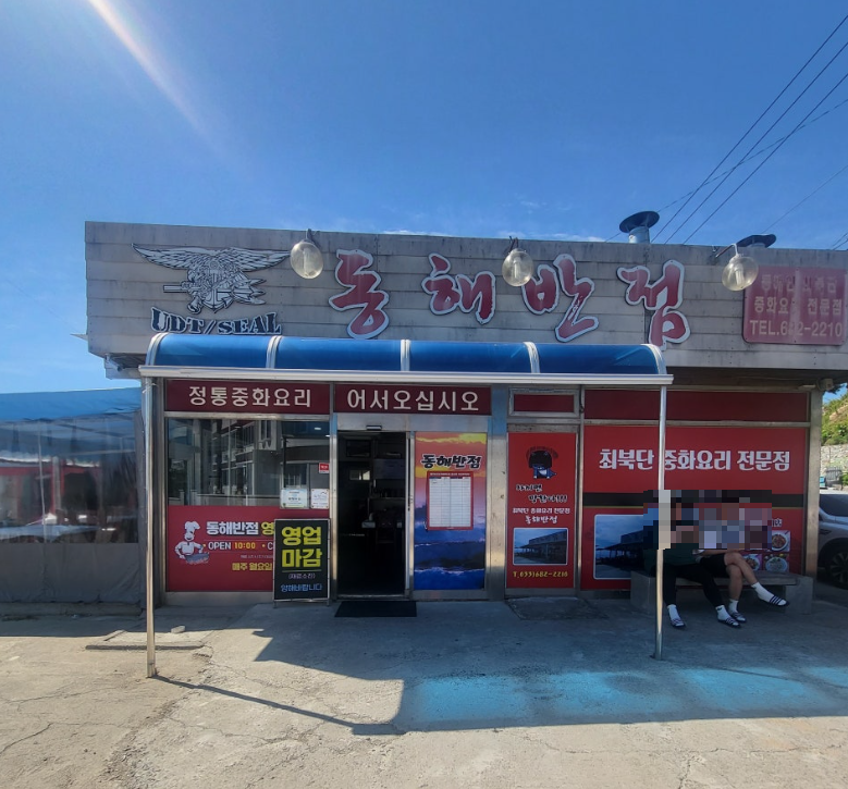 동해반점은 대한민국 최북단에 위치한 식당으로 주변 경관이 좋아 인기가 많습니다. 대표 메뉴는 중화 비빔면과 중화 비빔밥으로 갖은 해물과 채소를 넣은 것을 볶음면과 비슷하지만 다른 곳에서는 맛볼 수 없는 동해반점만의 특별한 맛을 내고 있습니다.