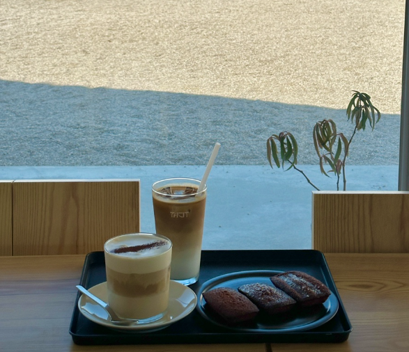 대표메뉴인 솔방울 라떼 & 쿠키 세트는 매일 정해진 수량만 판매하며 당일에 갓 구운 베이커리와 향긋한 커피를 마시며 아름다운 풍경을 감상할 해 보세요.