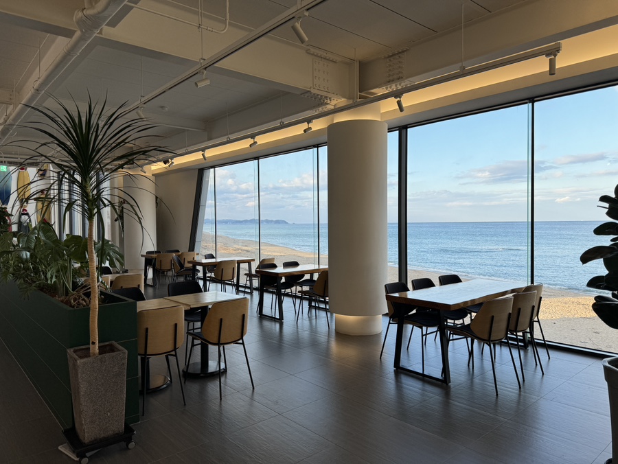 송지호 근방 해변에 위치한 카페로 건물은 3층 규모의 에어프레임은 실내에는 서프보드로 장식된 계단식 좌석이 이목을 끄는 곳입니다. 커피 한 잔 마시며 실내 통유리로 풍경 감상도 할 수 있고 루프탑이 있어 해변 물멍하기에도 좋습니다.