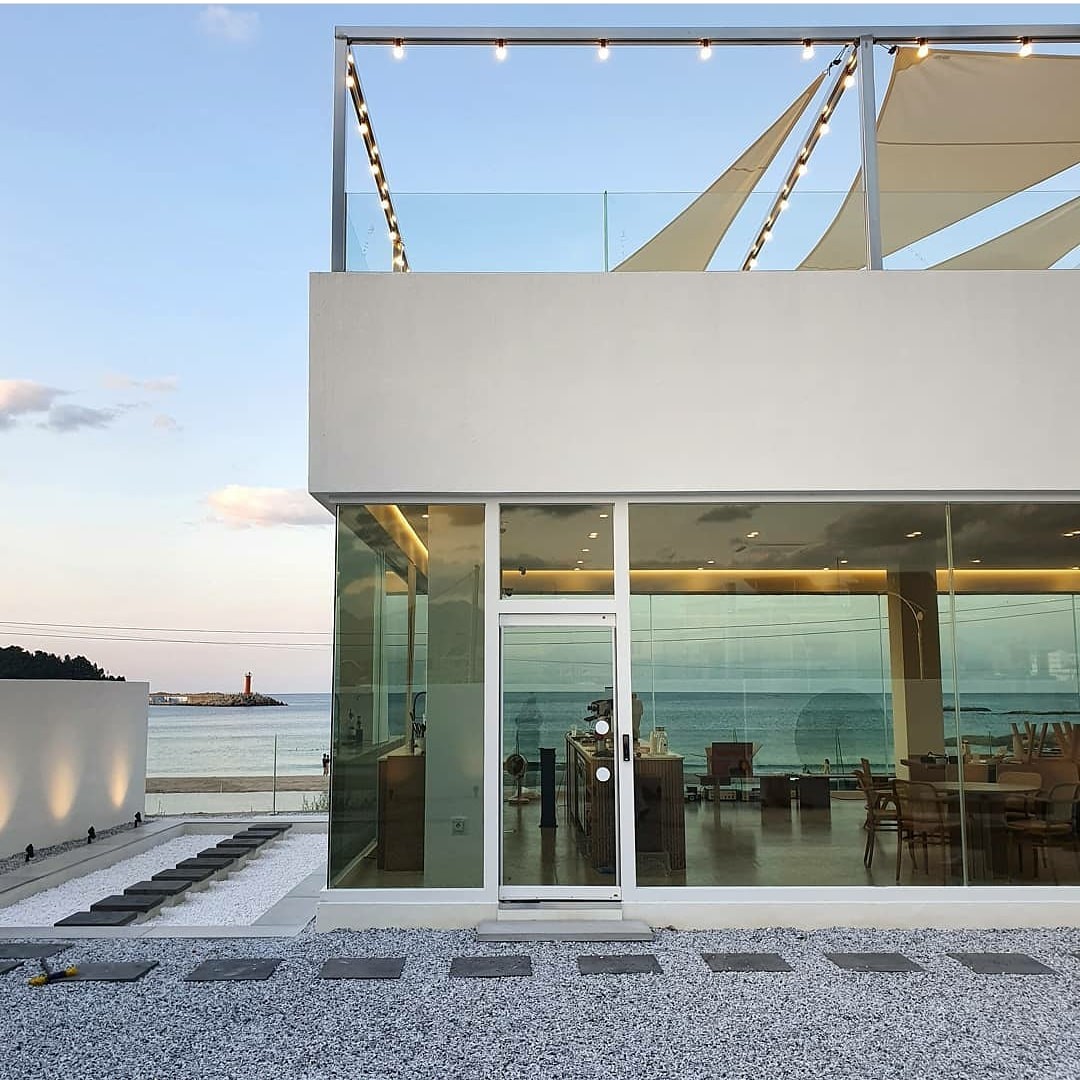 태시트는 건 물의 하얀 벽과 커다란 통창으로 보이는 푸른 바다가 마치 해변의 작은 미술관처럼 느껴지는 오션뷰 카입니다.