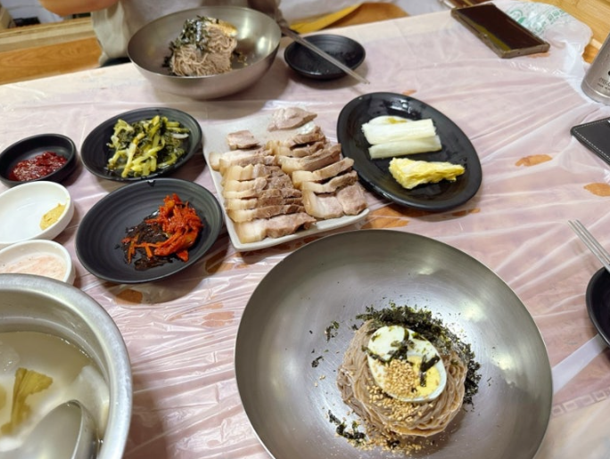 다른 것을 섞지 않은 메밀 특유의 향이 살아있는 면에 시원하고 부드러운 맛을 좋아한다면 식초와 다진 양념을 덜 넣으면 본연의 맛을 즐길 수 있습니다.