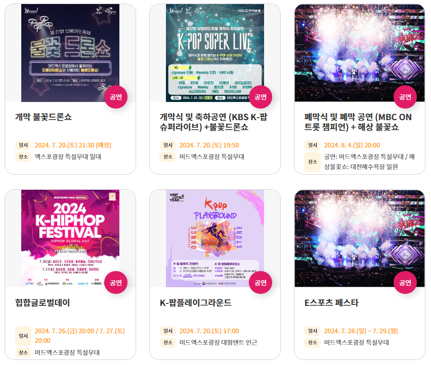 - 일시 : 2024. 7. 20.(토) ~ 8. 4.(일) / 주말 중심