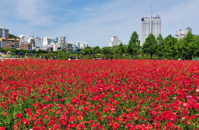 탑동시민공원은 시민들의 활력충전을 위해 도심 속에 조성된 치유와 힐링의 녹색생명 공간입니다. 5월이 되면 빨간 양귀비뿐만 아니라 다양한 색깔의 양귀비꽃으로 가득합니다.