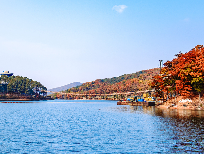 출렁다리로 유명한 마장호수는 파주의 대표적인 가을 명소중 하나입니다. 길이 220m, 폭 1.5m의 마장호수 출렁다리는 국내 최장 출렁다리로 걸을 때마다 살짝 흔들려서 압도적인 단풍과 스릴을 동시에 즐길 수 있습니다.