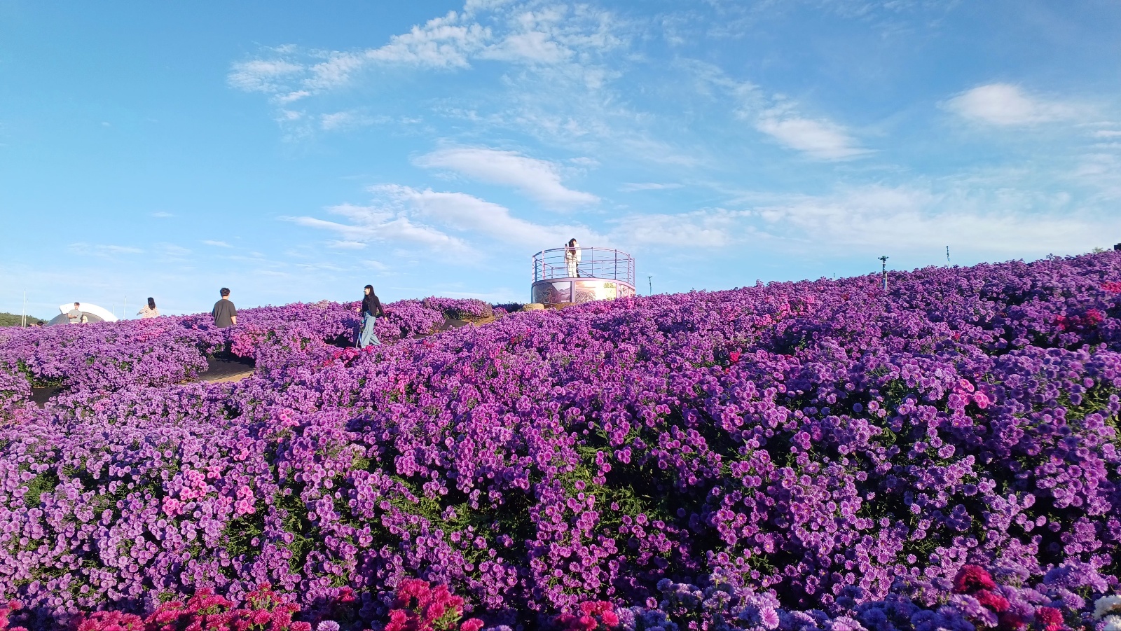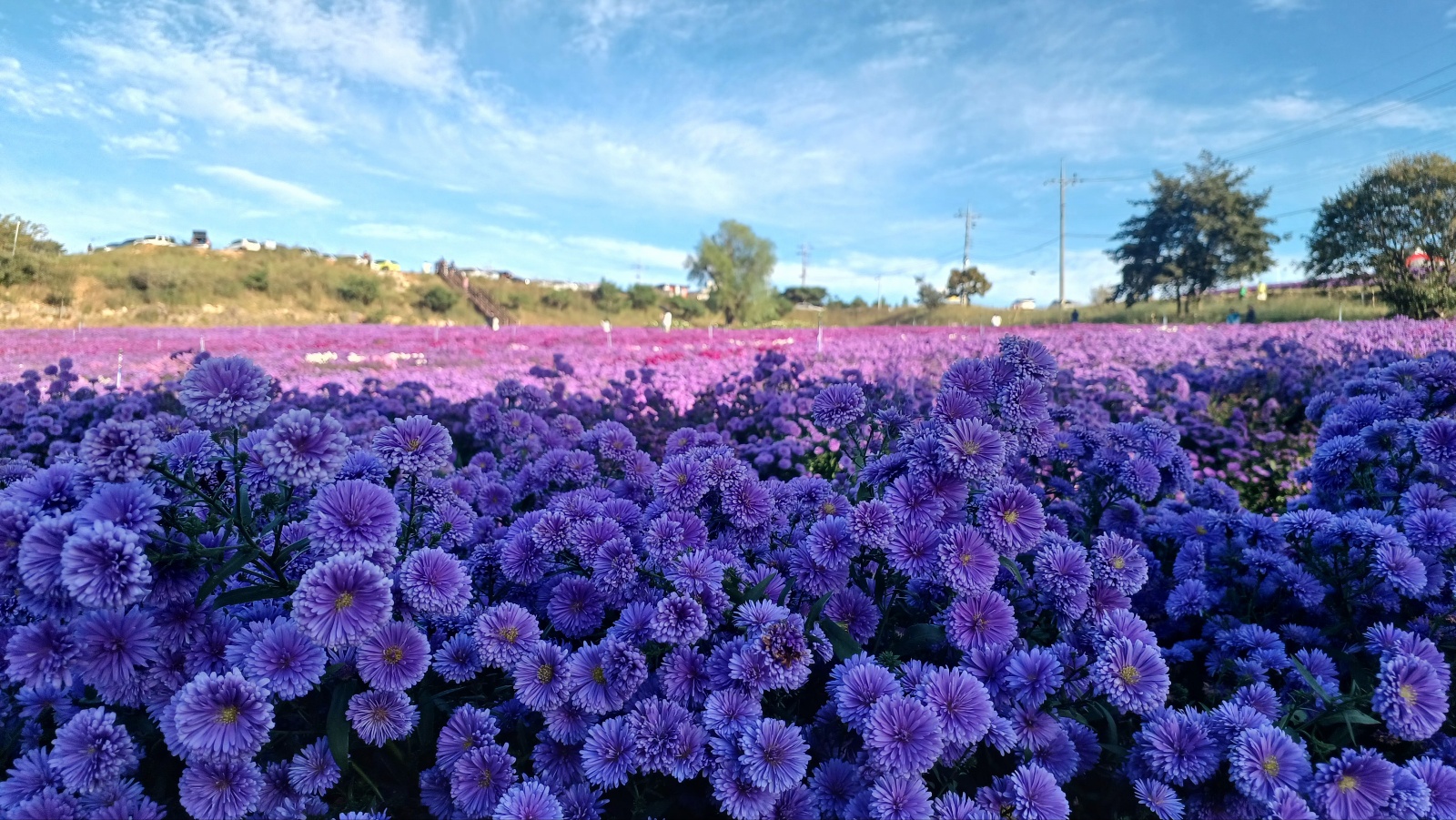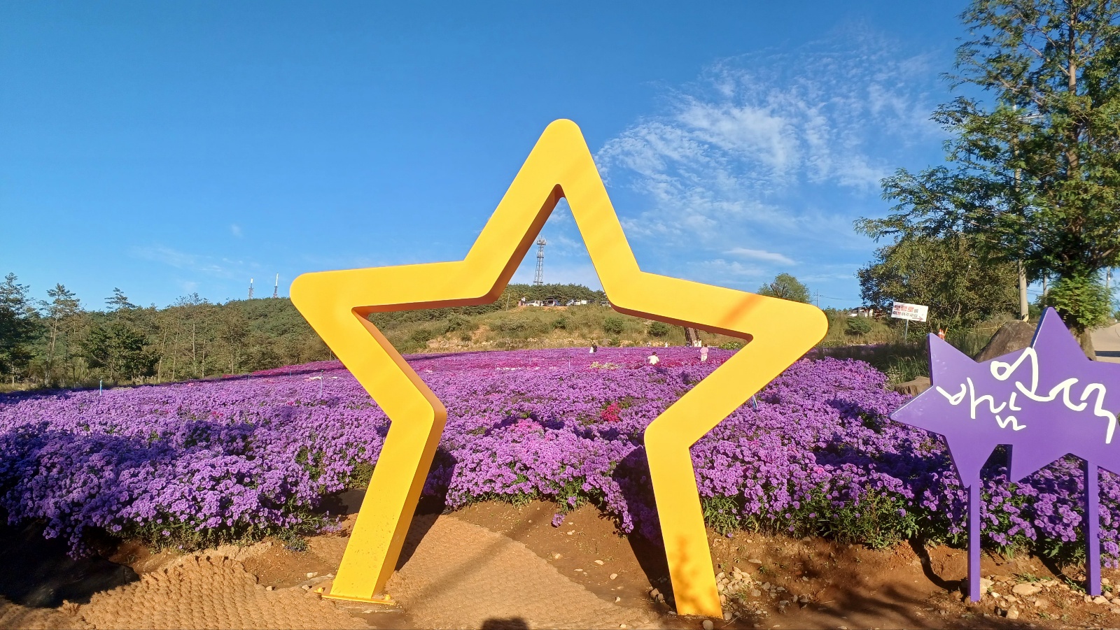 하늘과 맞닿은 듯한 별바람언덕의 보라색 아스타국화와 청명한 가을하늘이 멋진 풍경을 선사합니다.