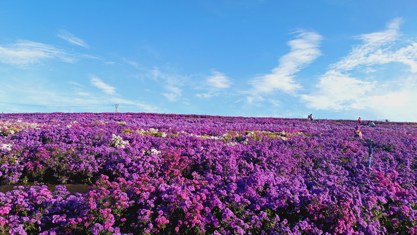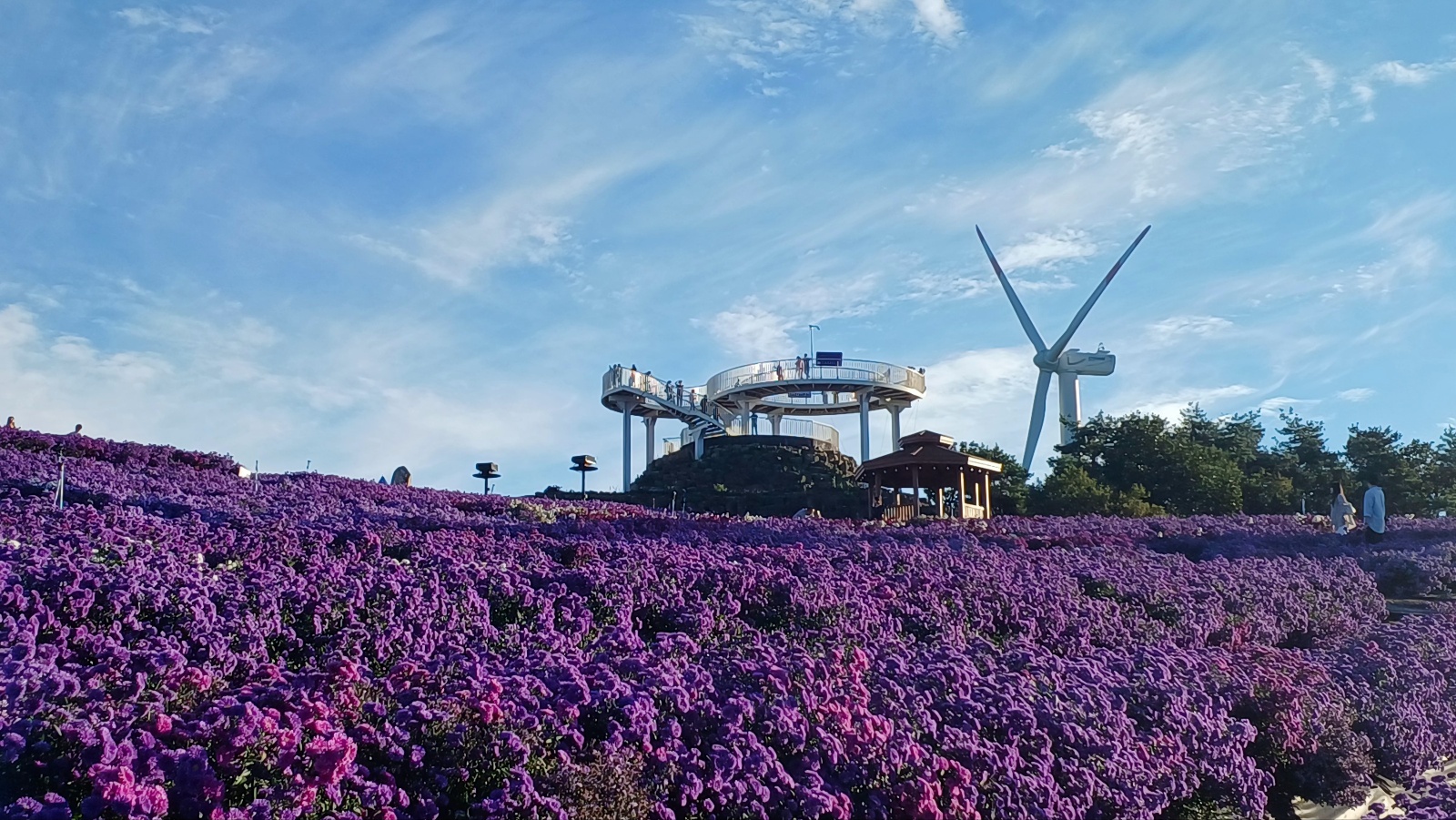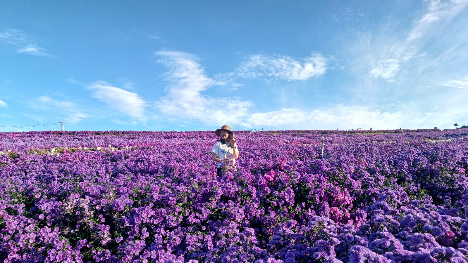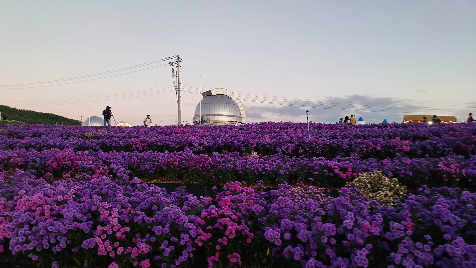 하늘과 맞닿은 듯한 별바람언덕의 보라색 아스타국화와 청명한 가을하늘이 멋진 풍경을 선사합니다.