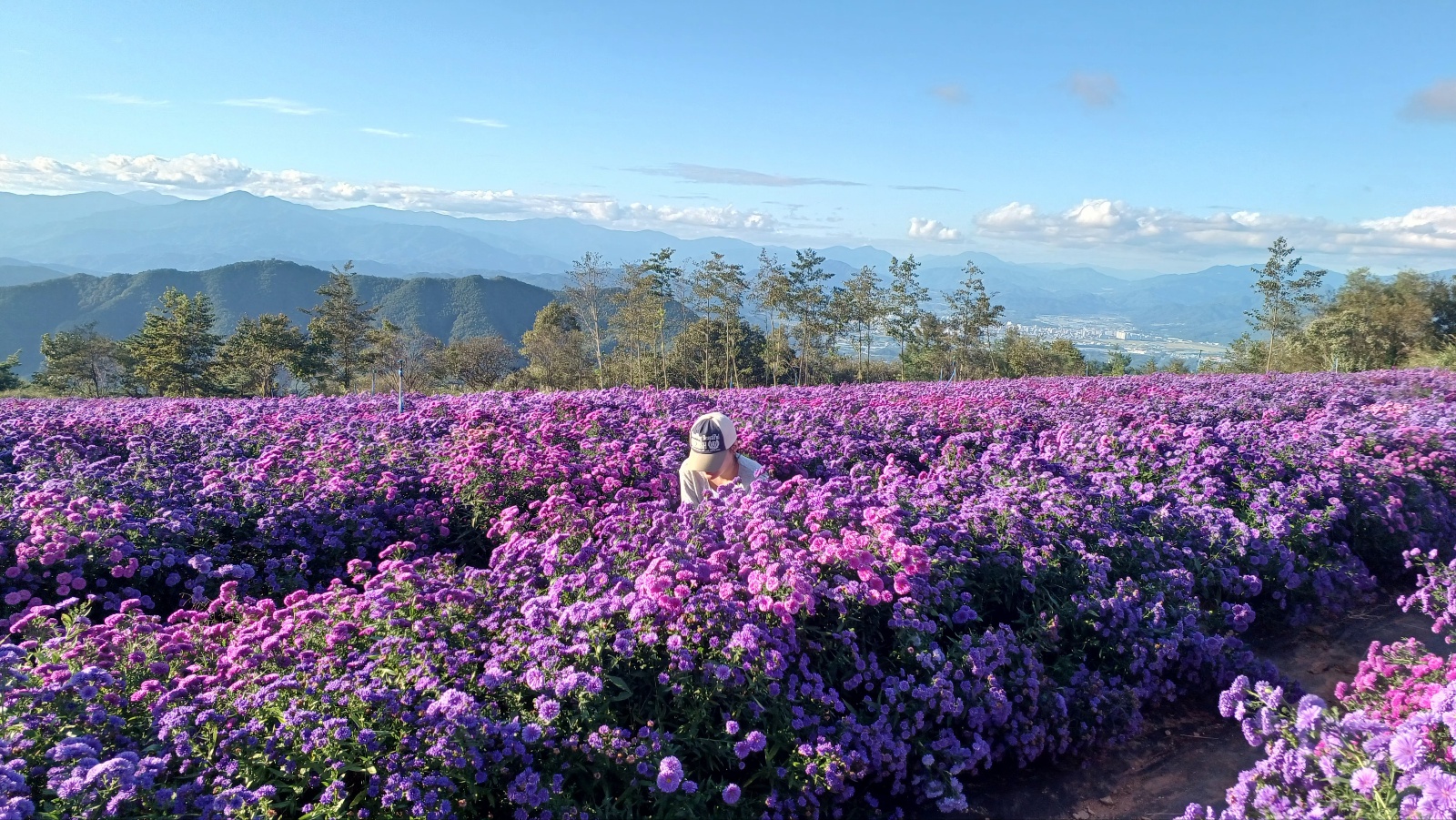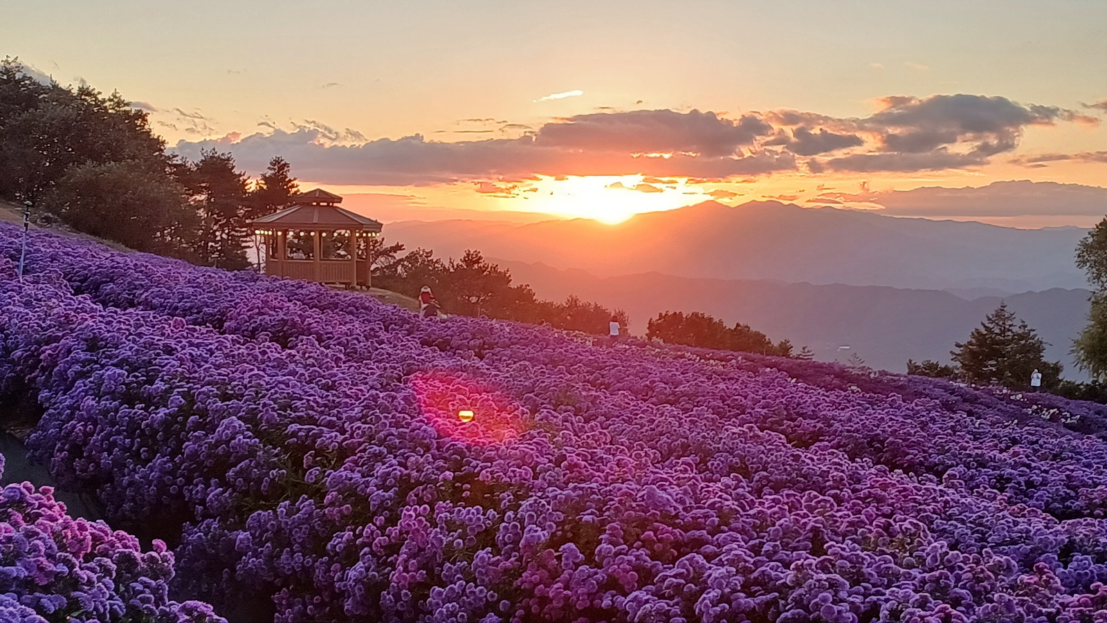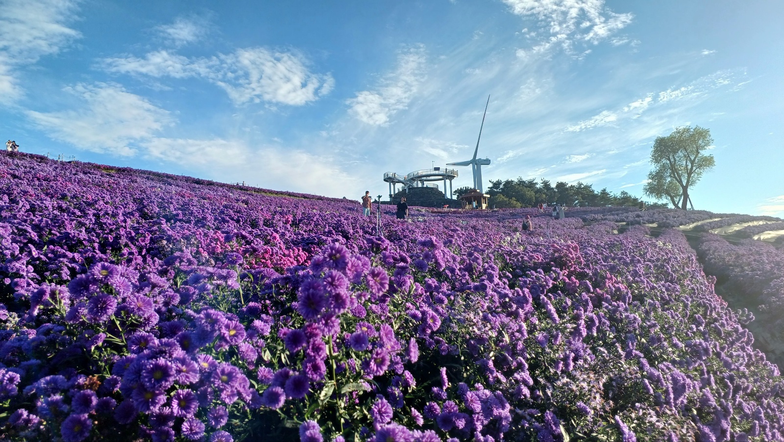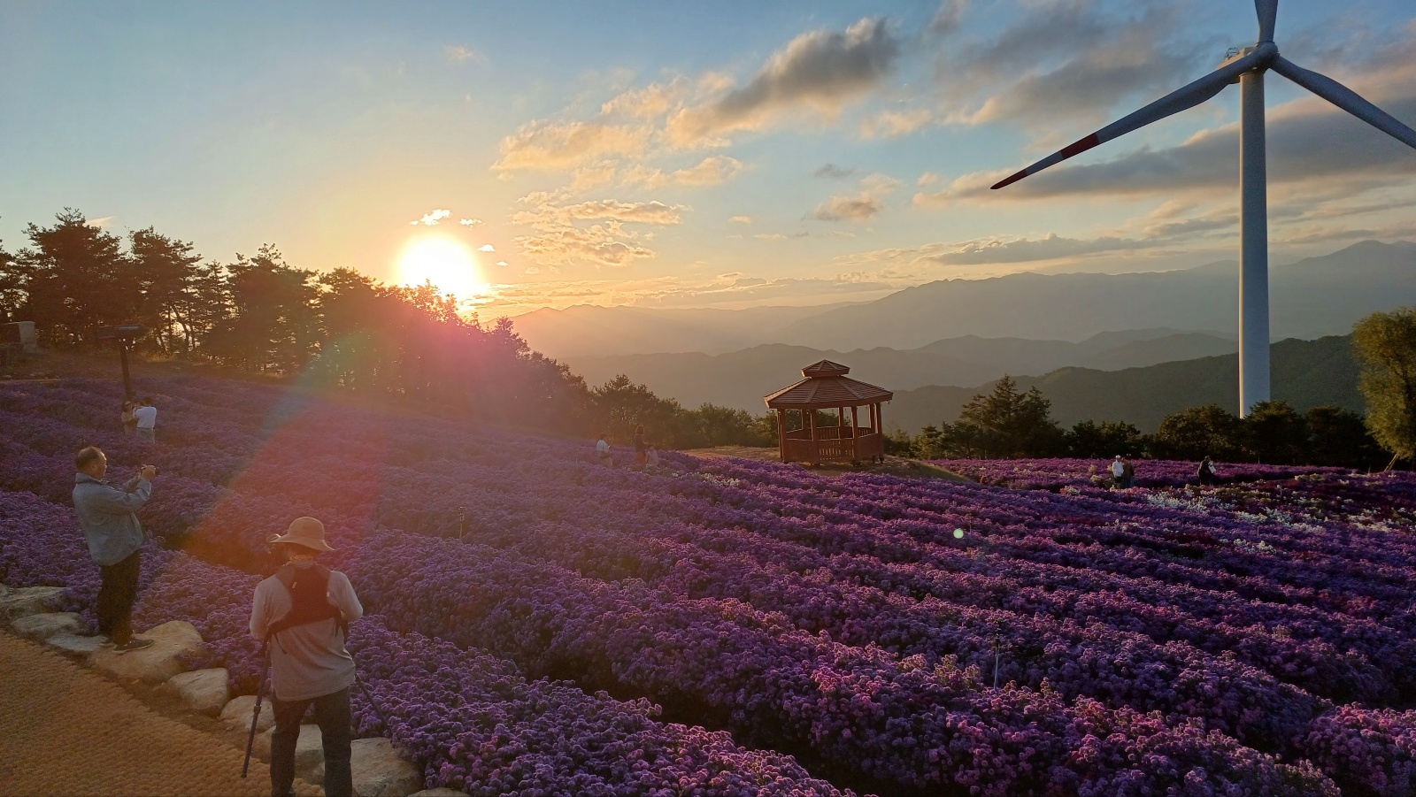 아스타국화의 성지 거창 감악산 별바람언덕이 보랏빛 세상으로 물들었습니다. 더운 여름 날씨를 이겨내고 풍성하게 피어난 아스타국화로 가득한 거창 감악산 별바람언덕에 선선한 가을바람이 더해져 천상의 화원을 거닐기 더없이 좋은 계절입니다. 가을꽃, 가을바람, 가을햇살 만끽할 수 있는 거창 감악산 별바람언덕으로 가을감성 여행 떠나보세요.