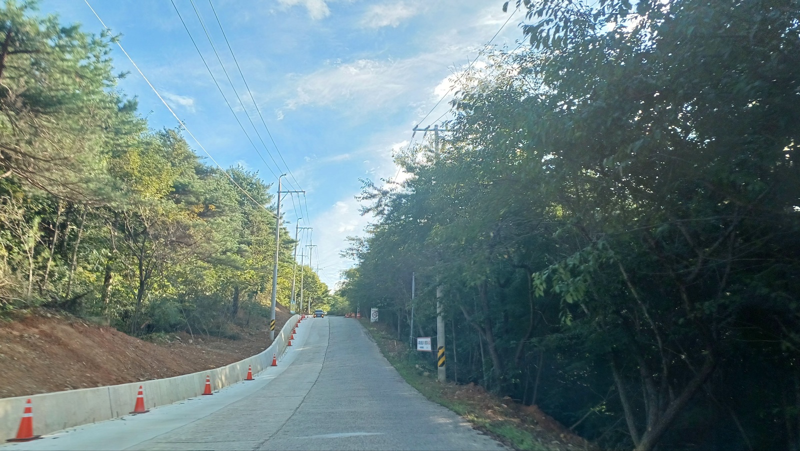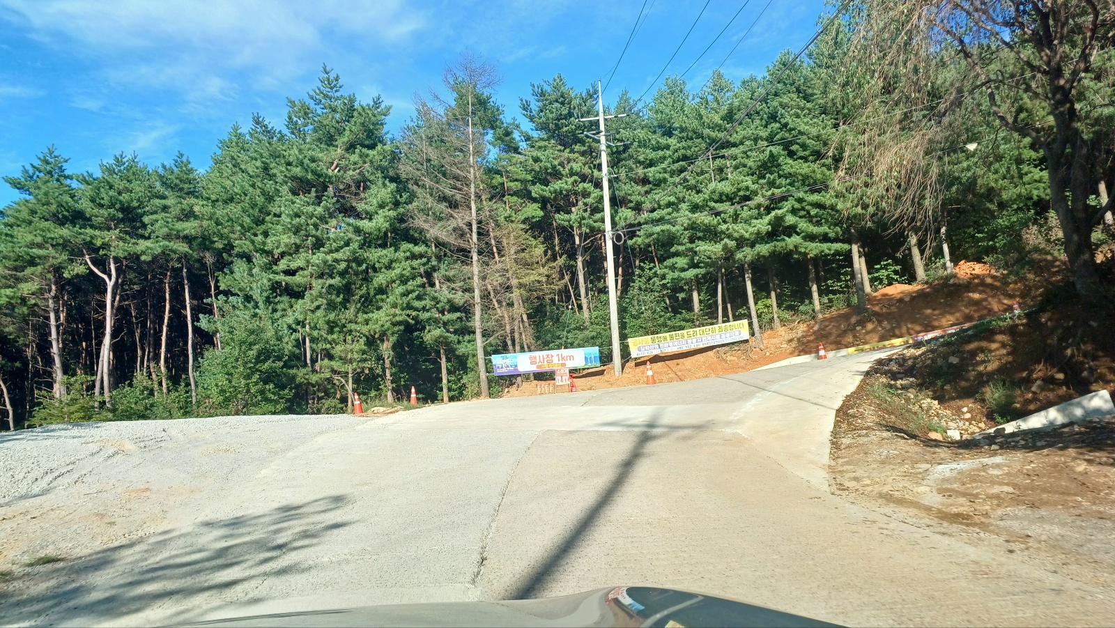 감악산 별바람언덕 가는 길은 차량 2대가 지나다닐 수 있도록 포장되어 있어 오가는 차량 불편함 없이 다닐 수 있습니다. 길은 산길이라 경사가 있는 편이지만 심한 편은 아니어서 쉽게 오를 수 있습니다. 다만 정상 부근에서 경사가 심한 곳이 잠깐 있습니다.