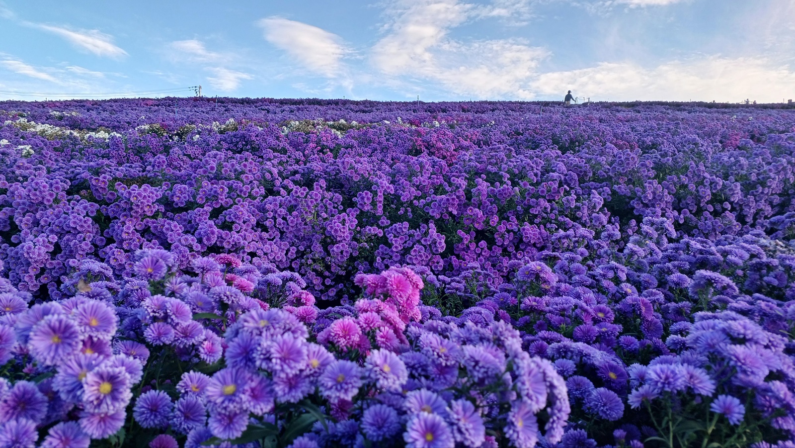 하늘과 맞닿은 듯한 별바람언덕의 보라색 아스타국화와 청명한 가을하늘이 멋진 풍경을 선사합니다.