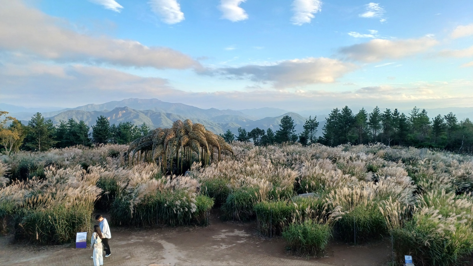 별바람언덕에는 억새는 볼 수 있습니다. 억새는 미로형식으로 만들어져 있고 중앙에 대나무로 만든 조형물이 있어 사진 찍기 좋은 포토존 성지입니다.
