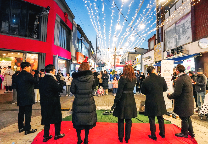 해피 산타마켓은 다양한 공연 프로그램을 통해 축제의 흥겨움을 더합니다. 공연은 전문 예술인의 무대뿐만 아니라 시민이 직접 참여하는 콘텐츠로 구성되어 모두가 함께하는 축제로 진행됩니다.