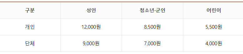 성인 및 청소년 3,000원, 유아. 어린이. 65세 이상. 장애인은 2,000원입니다.