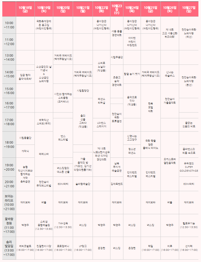 - 기간 : 10. 18.(금) ~ 11. 3.(일) / 17일간