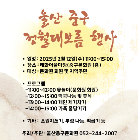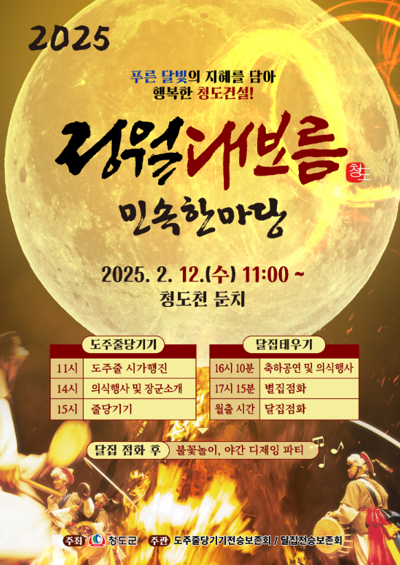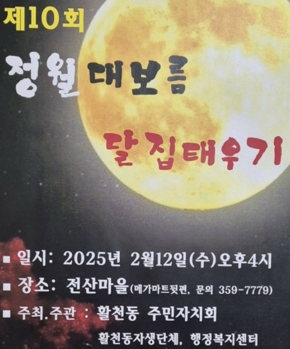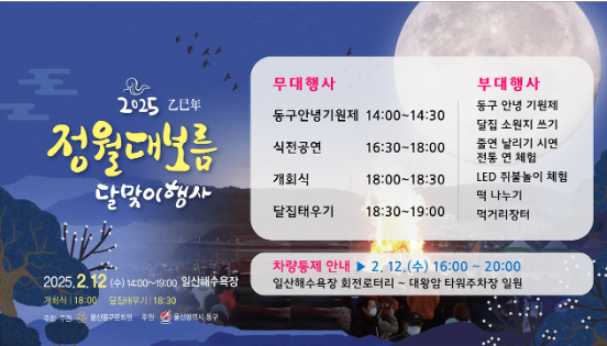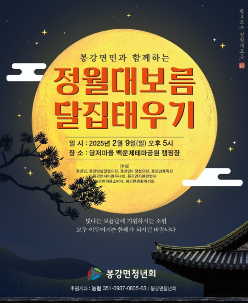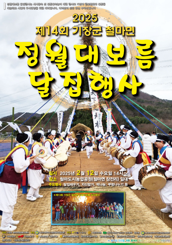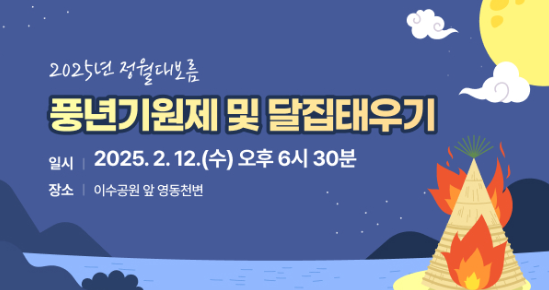 2025년 2월 9일(일)부터 3월 1일(토)까지 관내 마을별로 정월대보름 행사를 개최합니다.