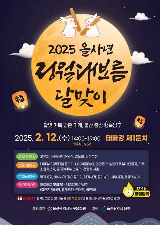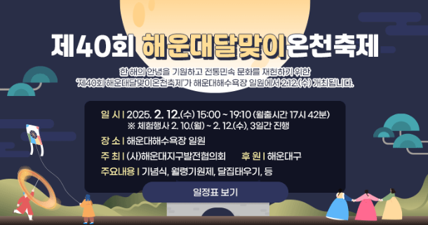 - 행사내용 : 전통예술공연, 달맞이 행사, 체험부스 운영