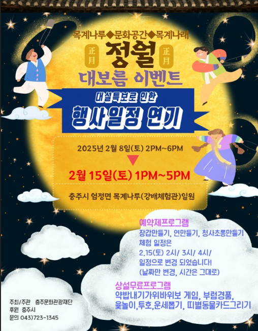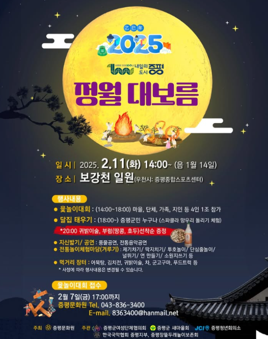 | 둥근달 보러 떠나는 충북 2025년 정월대보름 행사 축제 모음 (0) | 2025.02.07 |