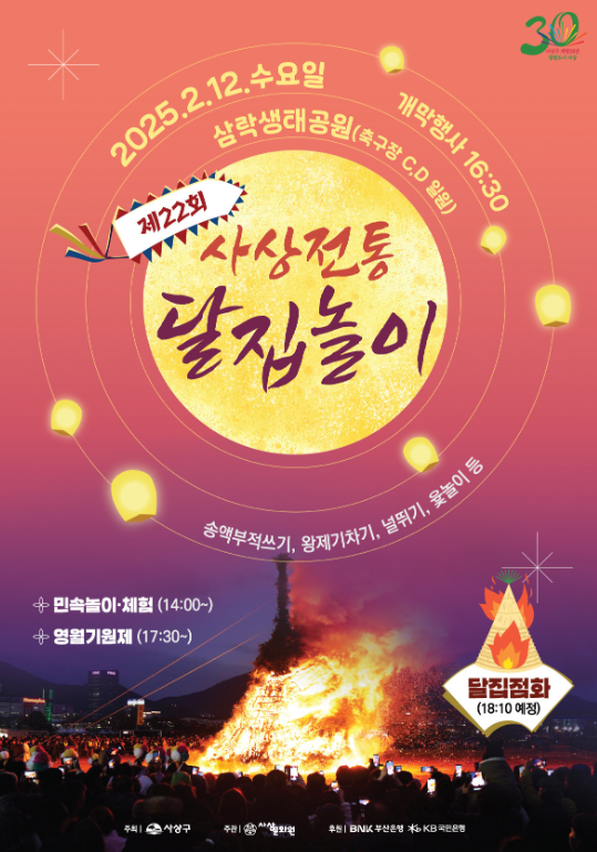 - 내용 : 달집점화 기념식, 소원지 쓰기, 민속놀이존(LED쥐불놀이, 제기차기)