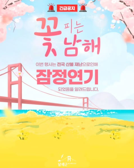 - 내용 : 벚꽃 피어있는 남파랑길도 거닐도 밤에는 남해대교에서 펼쳐지는 드론 라이트 불꽃쇼 즐기기