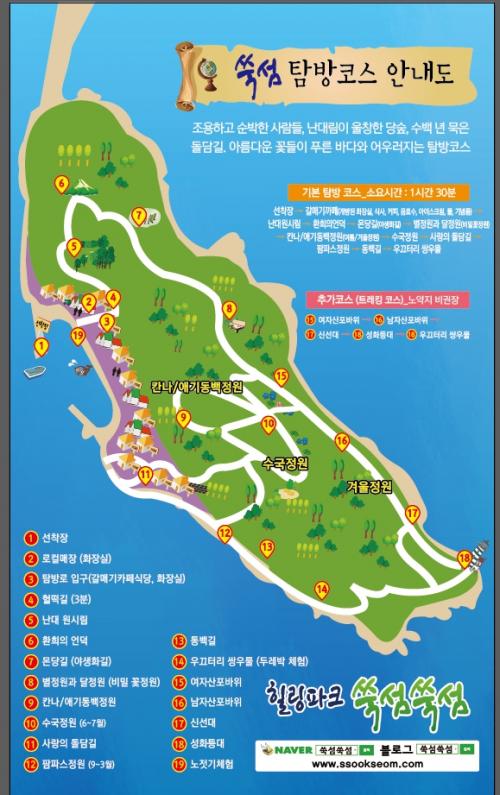 쑥섬은 커다란 섬이 아니므로 한 바퀴 둘러보는데 2시간 정도 소요됩니다.