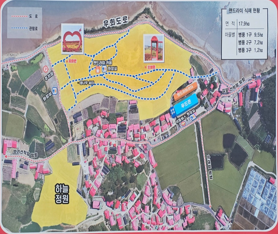 뿐만 아니라 맨드라미 사진전, 병풍도 사진관 등 작은 문화행사와 워킹플라이데이, 포토존, 카페, 푸드존, 쉼터 등 편의시설과 먹거리 등 부대시설도 갖춰 섬 여행에 불편함 없이 즐길 수 있도록 했습니다.